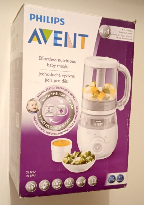 Kuhanje na pari, miješanje, odleđivanje i podgrijavanje u jednoj posudi. Kapacitet: 1 l za kuhanje krute hrane na pari, 720 ml za miješanje tekućih sastojaka. Posuda za spremanje hrane: 240 ml. Priložena knjiga s receptima po uzrastima i knjižica s uputama. Može se odmrzavati i zagrijavati hranu. Zvučni signal za kraj pripreme. Pranje u stroju za pranje suđa.