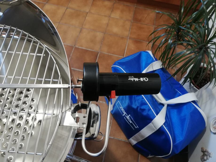 Roštilj je na ugljen ili drva, s okretnim ražnjem, rešetkom fi 40 cm, tanjurom, poklopcem, priborom za roštiljanje, ... ukupno 14 djelova.