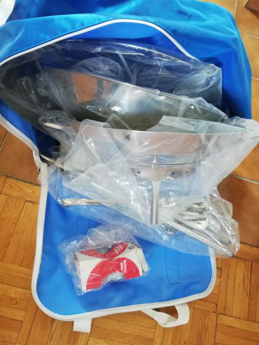 Sve u jednoj torbi. Praktičan za transport, montažu i demontažu, težine ca 10 kg, visina ca 1 m.