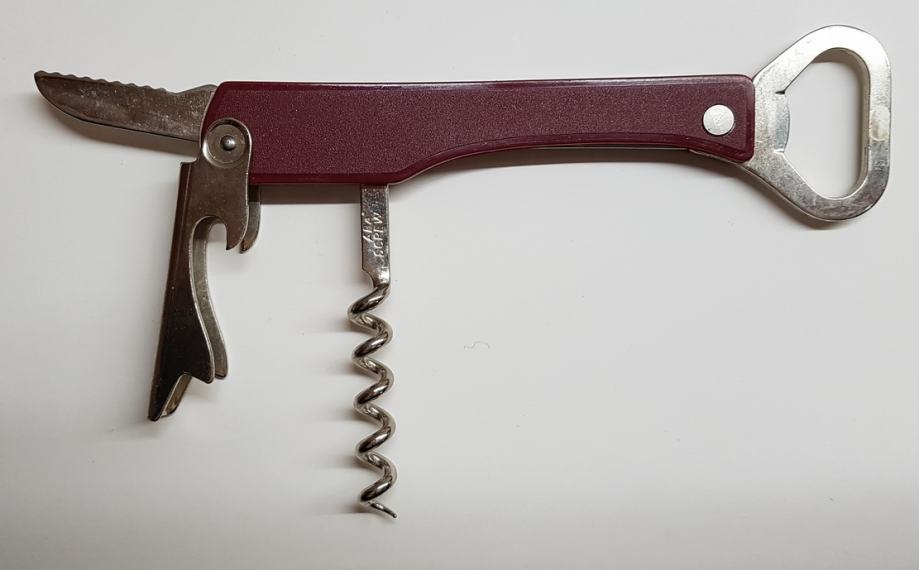 - Konobarski metalni otvarač za vino (vadičep) s malim nožićem i otvaračem za boce od nehrđajućeg čelika.