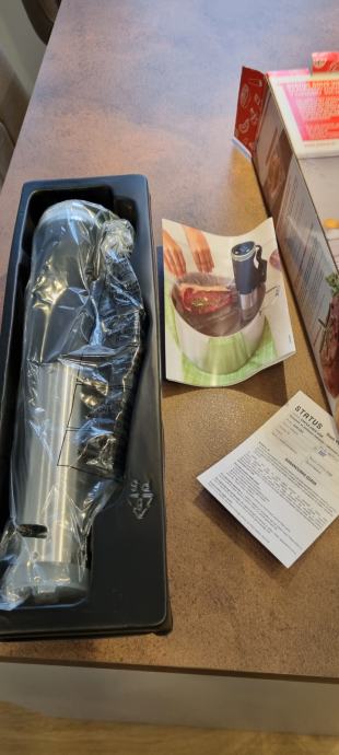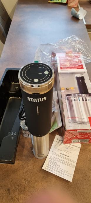 Prodajem novi, nekorišteni Status Sous Vide SVC100, štapno kuhalo namijenjeno kuhanju hrane pakirane u vakuumu na određenoj temperaturi u određenom vremenu. Temperatura kuhanja ostaje niža od točke ključanja, pa kuhanje traje duže, a istovremeno jela pripremljena na ovaj način ravnomjerno se kuhaju sa svih strana, mekana su i izuzetno ukusna.