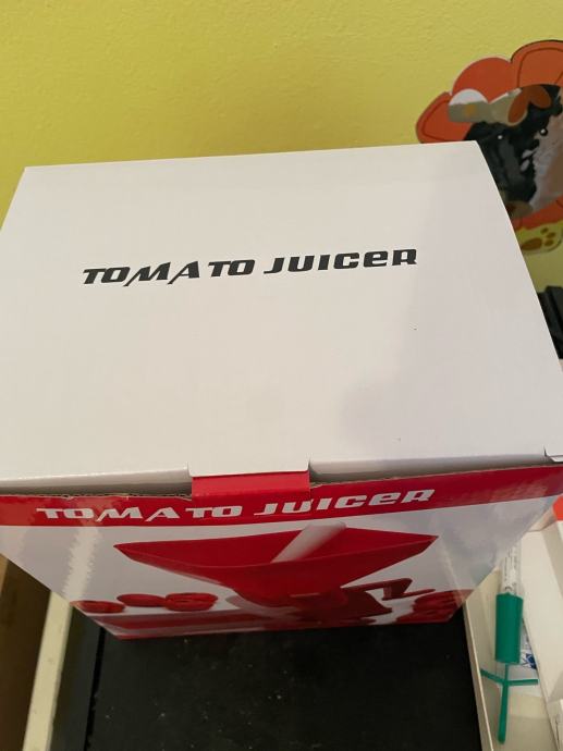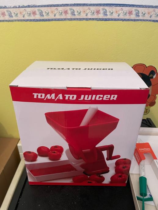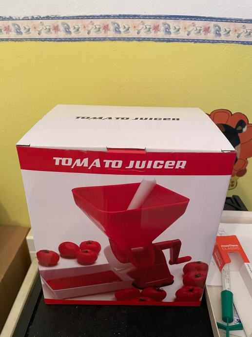 Prodajem jedanput koristeni ručni sokovnik za rajčice Tomato Juicer. Radi se o praktičnom kuhinjskom aparatu za cijeđenje rajčica, izrađenom u crvenoj i bijeloj boji.