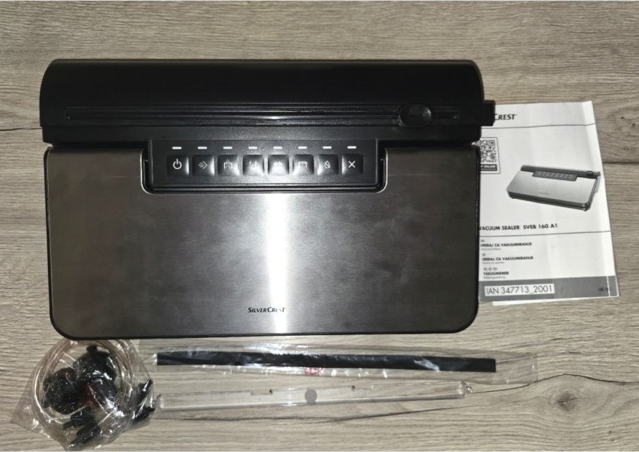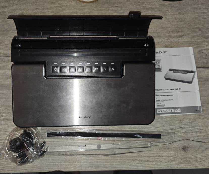 Prodajem rabljenu vakumirku SilverCrest u odličnom stanju s pripadajućim priručnikom i dodatnom opremom. Uređaj omogućuje jednostavno vakumiranje hrane za dugotrajno očuvanje svježine namirnica. Idealan je za kućanstva koja žele smanjiti bacanje hrane i produljiti rok trajanja namirnica.