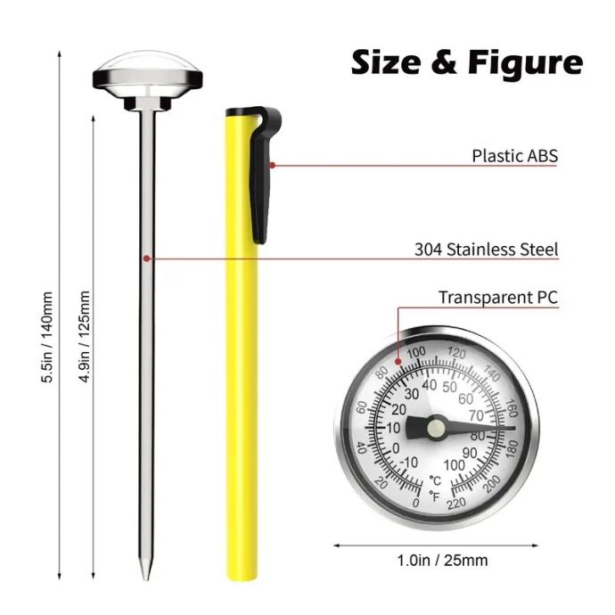 Svestran kvalitetan i točan ubodan mini analogni termometar za pećnicu roštilj kuhanje mjerenje hrane tekućine sa držačem za praćenje i dostizanje željene temperature