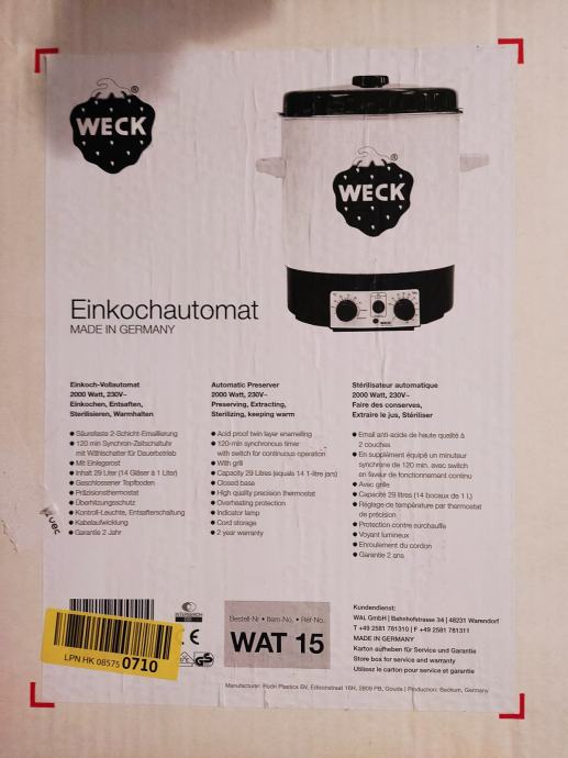 Weck WAT 15, kuhalo, aparat za konzerviranje hrane, 29L, 2000W, NOVO
