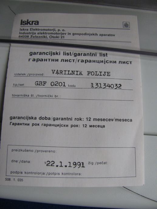 U original kutiji sa garancijskim listom od 22.01.1991 god.