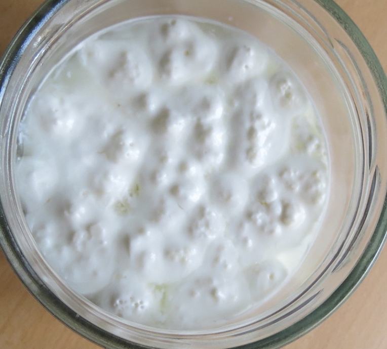Staklenka ne treba biti puna do vrha, dobro ju zatvorite poklopcem. Zrnca se najprije hrane mlječnim šećerom i proizvode mlječnu kiselinu i ugljični dioksid, zbog kojeg kefir ima specifičan osvježavajući, muzirajući okus.