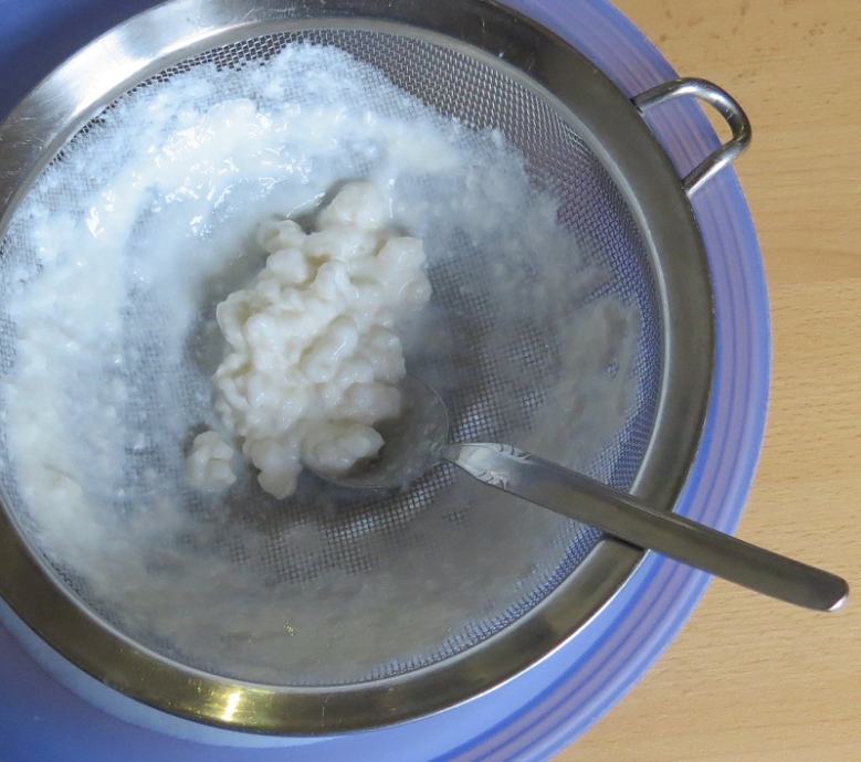Ostavite stajati na sobnoj temperaturi, ako je moguće na toplijem mjestu, primjerice uz štednjak (do 25 stupnjeva C), na mjestu koje nije izloženo direktnom sunčevom svjetlu koje bi uništilo vitamine u kefiru. Povremeno protresite, možete i promiješati žlicom. Nakon 24 sata mlijeko će biti zgusnuto u kefir, a na dnu staklenke može se izdvojiti i sirutka. Procijedite kefir kroz cjedilo. Dobivenu tekućinu pretočite u bocu pa zatvoreno držite u hladnjaku i trošite sljedećih dana, a neće se pokvariti niti ako ostane u hladnjaku i duže. Kefirna zrnca isperite pa ih ponovo stavite u staklenku sa svježim mlijekom za sljedeću količinu kefira. Možete ih isprati vodom iz vodovoda, ili još bolje izvorskom vodom. Ako ih i ne isperete, nego ih samo prebacite u novo mlijeko, neće se ništa dogoditi. Možete eksperimentirati s okusom i gustoćom pa ostaviti kefirna zrnca da fermentiraju i 48 sati.