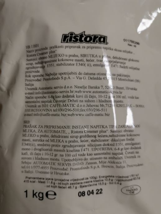 RISTORA mlijeko u prahu za Vending aparate 1kg Novo R1 račun PDV