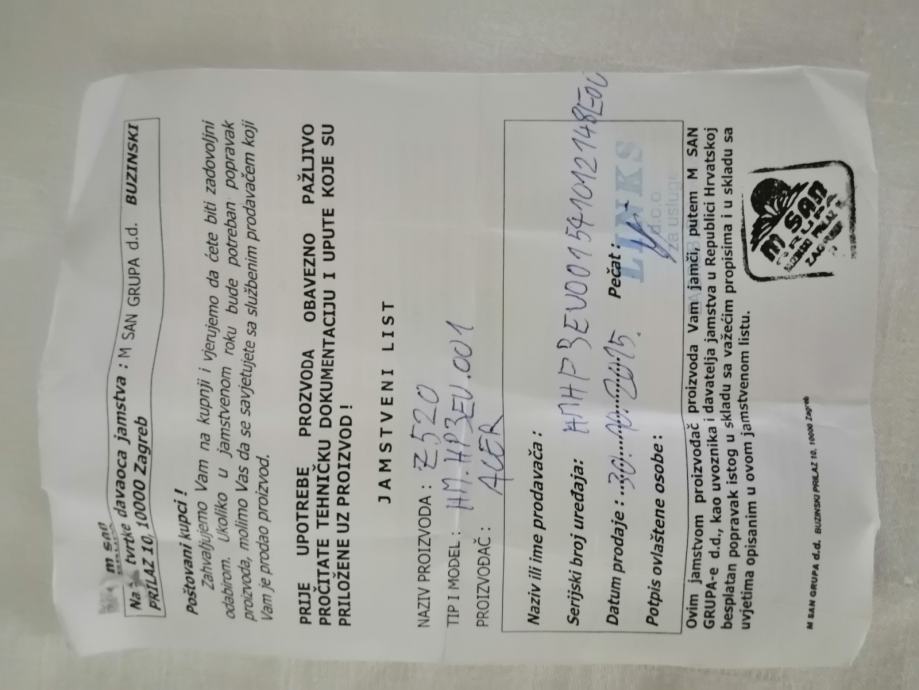 Acer Z520 liquid za djelove