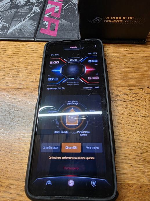 Asus ROG 5s 12/512, odličan gaming mobitel, poseban sa svojim "air trigger" tipkama za uživanje u igranju igrica. Asus ima 12 GB RAM-a i 512 GB interne memorije s odličnom dugotrajnom baterijom, pojačalom za odličan zvuk i još dosta toga. Uz mobitel dolazi kutija, kabel za punjenje i maskica. Moguće je samo osobno preuzimanje, a zamjena je moguća samo za iPhone 13 ili 14 Pro Max.