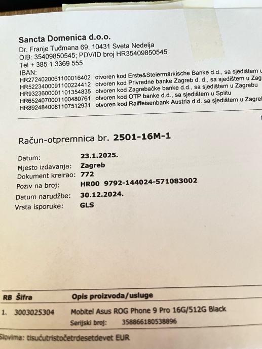 Asus rog 9 pro sa ventilatorom , cijena nije fix