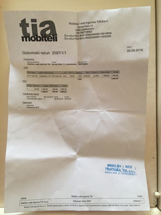 Smartphone Caterpillar CAT S30, star godinu dana (kupljen 9. rujna 2016. godine), u vrhunskom stanju. Pod jamstvom još narednih godinu dana. Očuvan je, ispravan, folija na ekranu skinuta tek prije nepunih mjesec dana. Baterija dugotrajna, traje i do 3 dana. Inače ga ne bi prodavao, ali sam dobio na poklon iPhone 7. Mobitel je vrhunski, sretno idućem vlasniku!
