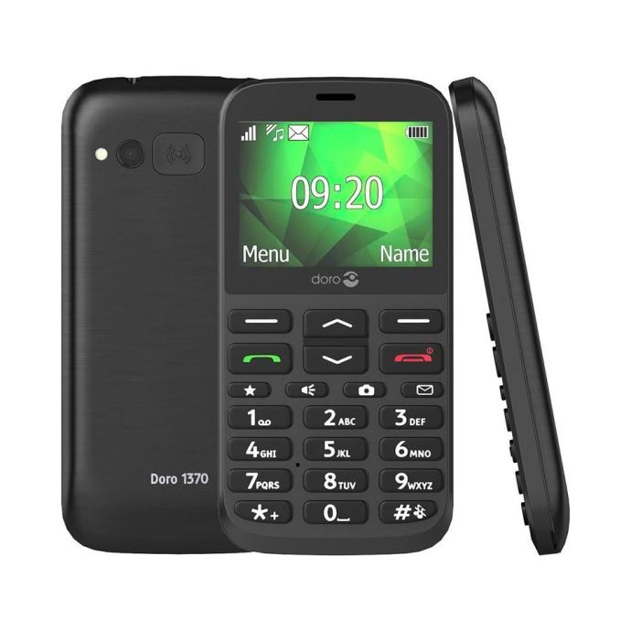 - Klasični mobitel Doro 1370 pogodan je za starije korisnike jer ima veliki zaslon, SOS gumb za pomoć i alarm za buđenje.