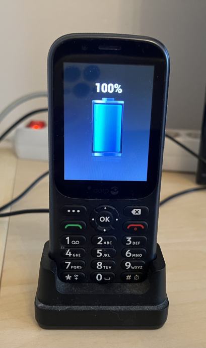 Mobitel je u odličnom stanju, dolazi s stalkom-punjačem i kablom. Ima krupna slova na tipkovnici i na ekranu te jak i jasan zvučnik da se dobro čuje prilikom telefonskog razgovora.