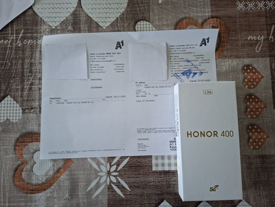 Nov, neotpakiran mobilni uređaj Honor 400 Lite i preklopna torbica.