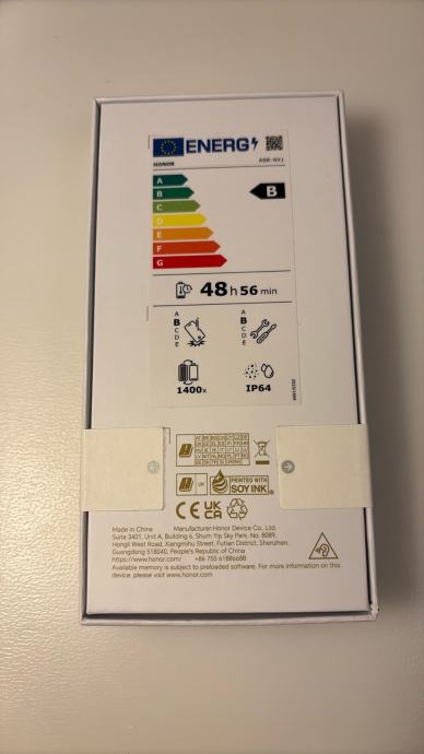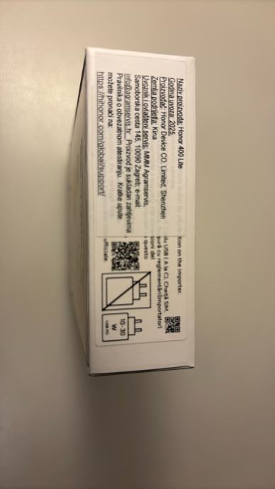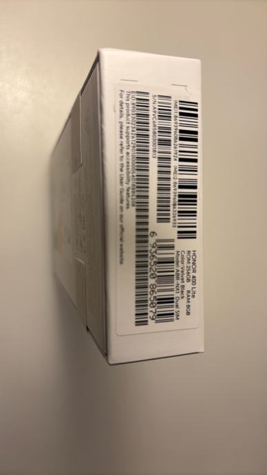 Prodajem potpuno nov Honor 400 Lite mobitel, tvornički zapakiran. Uređaj podržava 5G mrežu i dolazi sa svim originalnim dodacima. Model je u bijeloj kutiji s vidljivom energetskom oznakom klase B. Više komada.