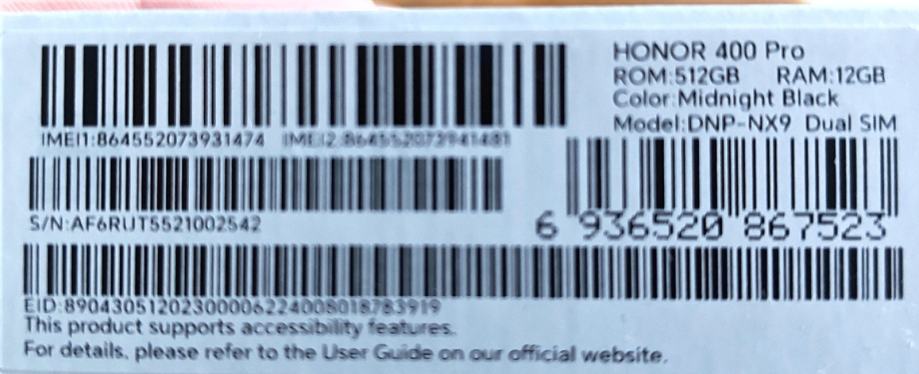 Prodajem honor 400 pro 12/512 izvađen iz kutije i aktiviran 10.8.2025 i vracen nazad u kutiju. garancija tece od 10.8.2025 traje do 11.8.2027. uz mobitel dajem zastitnu masku, kaljena stakla, 40W original punjac i kabel.