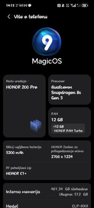 Honor Magic 400 Pro Memorija: 12/512 GB