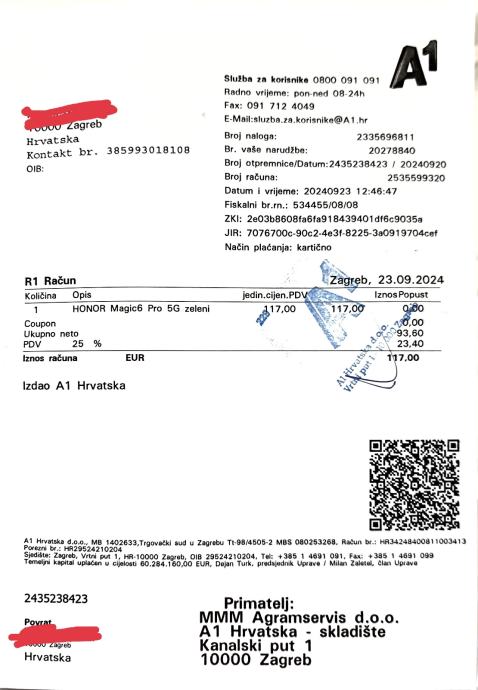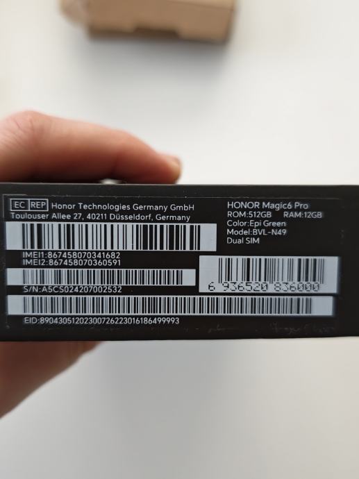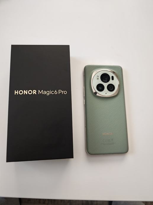 Prodajem rabljeni Honor Magic6 Pro s 512GB interne memorije i 12GB RAM-a. Dolazi s originalnom kutijom. Uz mobitel dolazi kabel za punjenje, maskica, par zaštitnih folija i staklo.