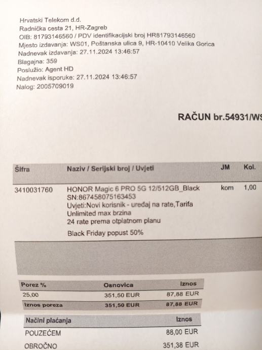 Honor Magic 6 Pro, zaštićen od prvog paljenja, nema ni jedne crtice na ekranu ili kameri, doslovce kao novi. Baterija traje minimalno 1 dan, uz mobitel orginal račun, kutija i dvije maskice. Za one koji ne prate...mobitel ima kameru rangiranu blizu samoga vrha. Jamstvo istiće 27.11.2026