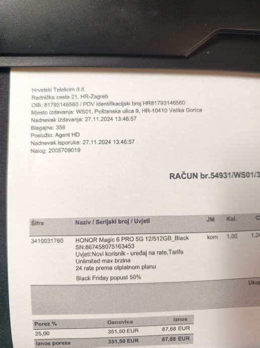 Honor Magic 6 Pro, zaštićen od prvog paljenja, nema ni jedne crtice na ekranu ili kameri, doslovce kao novi. Baterija odlična, uz mobitel orginal račun, kutija i dvije maskice. Za one koji ne prate...mobitel ima kameru rangiranu blizu samoga vrha. Jamstvo istiće 27.11.2026. Isključivo prodajem, bez zamjena