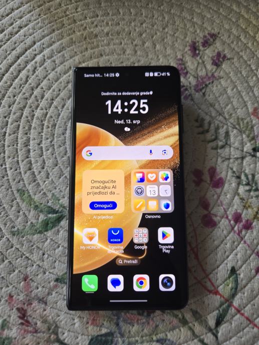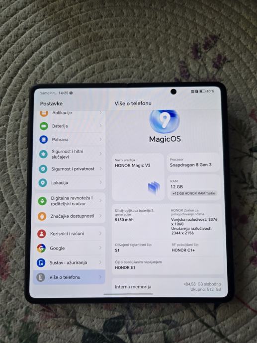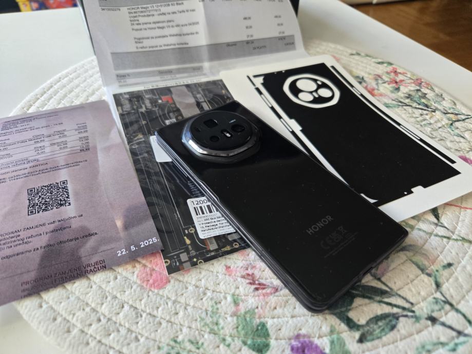 Prodajem u crnoj boji Honor Magic V3 sa 12gb rama i 512gb skladišne memorije. Uređaj je u stanju novoga bez tragova korištenja. Cijeli uređaj je u mobileoutfiters folijama plaćenim 70€. Također dajem 2 skina za mobitel. Račun i garancija HT. Cijena 920€ fixno. Cijena u zamjeni veća. Primopredaja zg, ostalo po dogovoru. Kontakt broj: 092-2142/607. Može poziv, sms, viber, whatsapp.