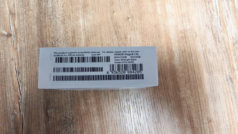 Honor Magic8 Lite 8/512GB Midnight Black. Dobiven od A1 uz tarifu, neotvoren i nekorišten. Uz njega ide račun, dobiven 2.2.2026. te ima 2 godine garancije.