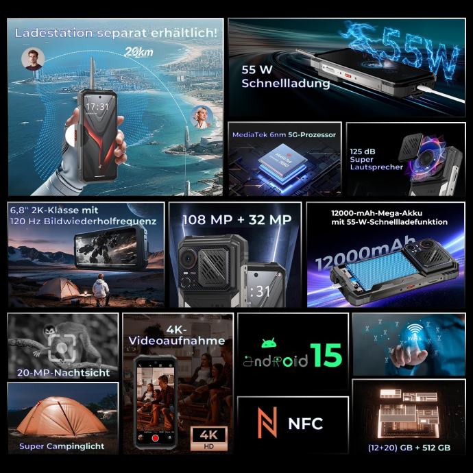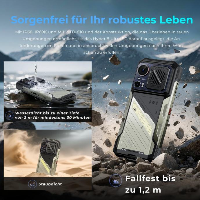 Prodaje se najnoviji HOTWAV Hyper 8 Ultra 5G smartphone s Walkie-Talkie funkcijom. HOTWAV Hyper 8 Ultra je ekstremno robusni smartphone napravljen kao alat za rad i boravak na terenu, s IP68/IP69K i MIL-STD-810H zaštitom te ogromnom baterijom od 12.000 mAh koja bez problema traje više dana. Ima veliki 6,8-inčni FHD+ ekran sa 120 Hz osvježavanjem, solidne performanse zahvaljujući MediaTek Dimensity 7050 čipu i dovoljno memorije za zahtjevne zadatke. Njegova najveća posebnost je ugrađena hardverska walkie-talkie funkcija ( VHF long-range i short-range UHF) sa uklonjivom antenom, koja radi i bez mobilne mreže, što ga čini idealnim za šumu, planinu, gradilišta i off-grid situacije. Na stražnjoj strani nalazi se snažno LED “camping” svjetlo, izuzetno glasan zvučnik i night-vision kamera za rad u potpunom mraku. Ovo nije elegantan telefon za svakoga, ali za outdoor radnike, avanturiste i profesionalce koji trebaju pouzdanost i komunikaciju bez signala – Hyper 8 Ultra ima savršenog smisla.