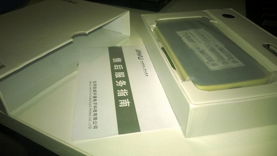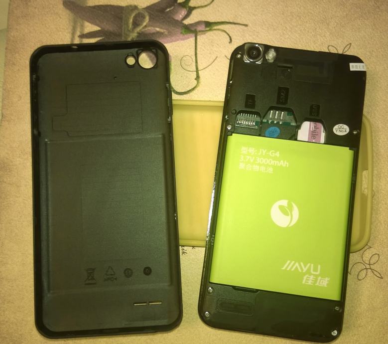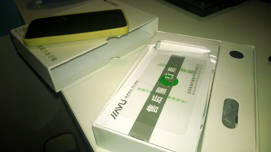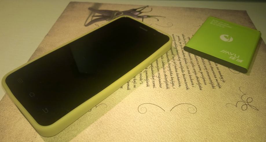 U kutiji je telefon, baterija, punjač i original Jiayu G4 žuti silicon back case cover (nema slušalica).