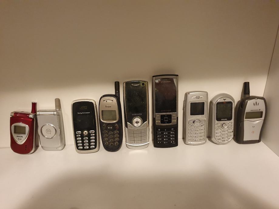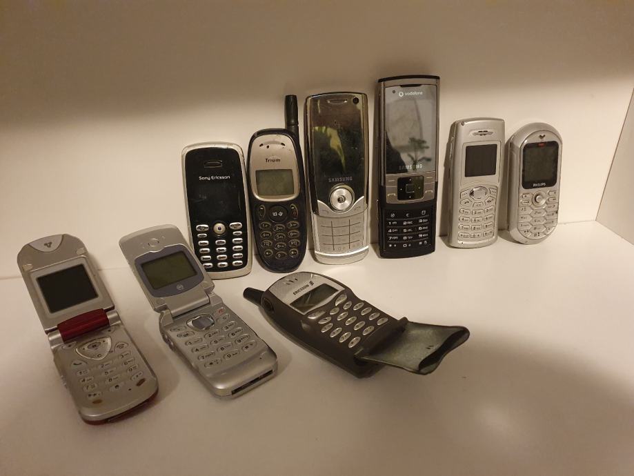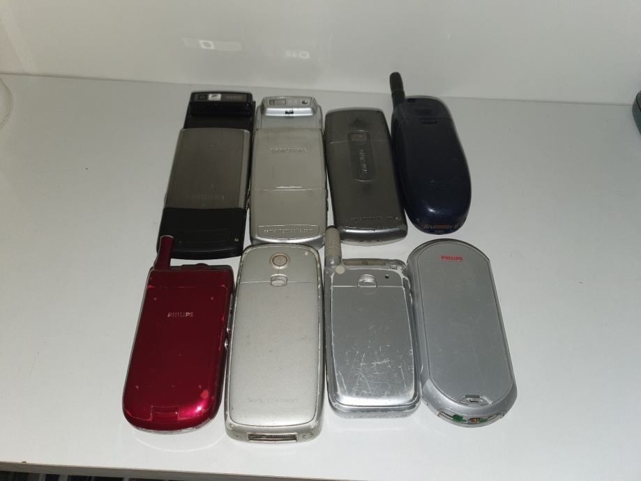 Stari telefoni, najvjerojatnije neispravni, za dijelove.. svi telefoni imaju straznje poklopce, ali bez punjaca.. vecinom bez baterija.. Ericsson t20 prodan