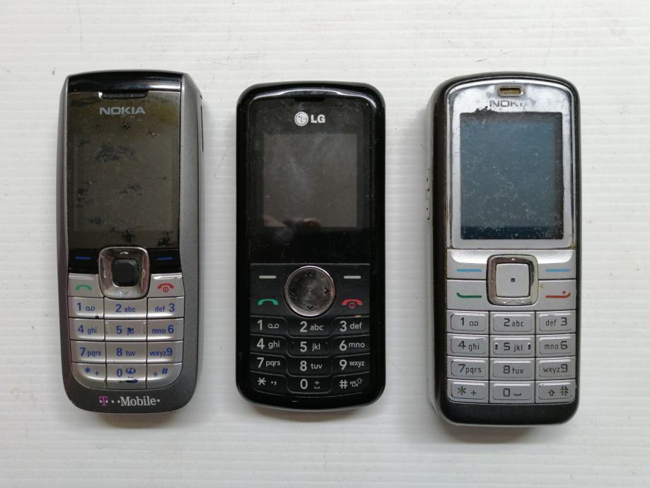 Nokia 2610, LG kp 100, Nokia 6070 za dijelove (bez pripadajučih punjača).