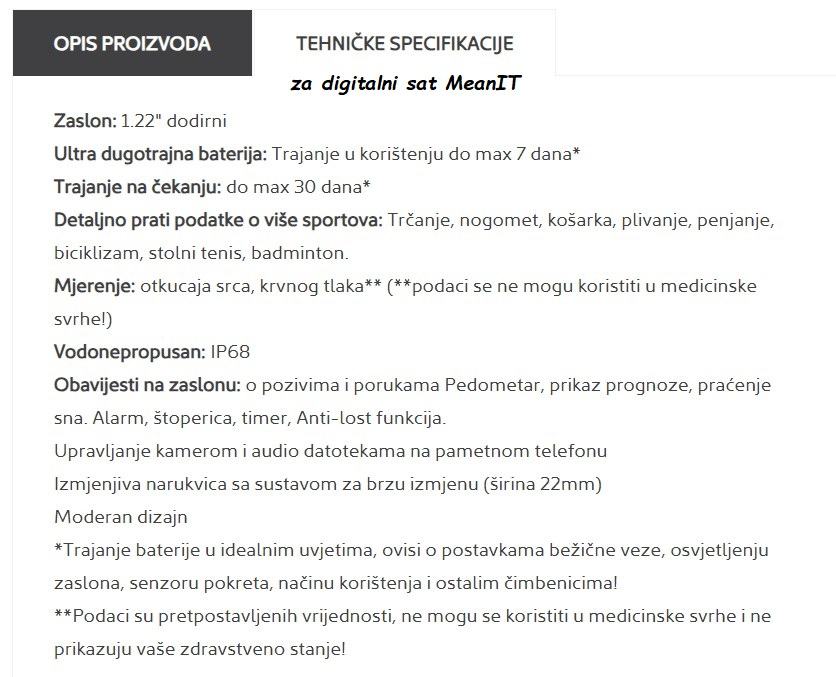 Tehničke detalje za sat pročitajte na slikama.