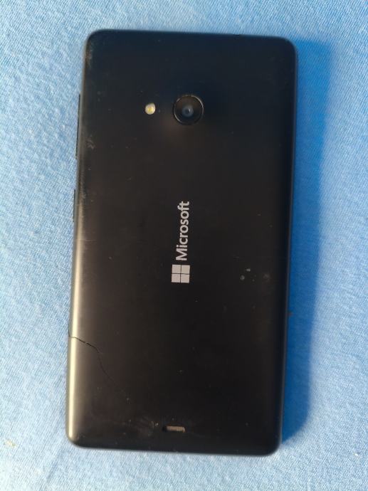 Prodajem Microsoft Lumia mobitel u crnoj boji. Uređaj ima Windows Phone operativni sustav s karakterističnim pločicama na glavnom zaslonu. Telefon je funkcionalan i uključuje se normalno.