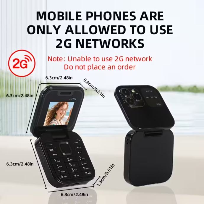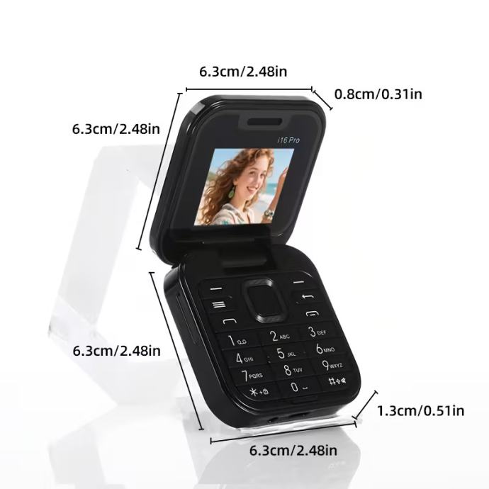 Mini sklopivi telefon | Moderan dodatak (staje u torbe ili džepove, estetski se slaže s odjevnim kombinacijama), podržava samo 2G, Dual SIM za dva broja, kompatibilan s više jezika, ima snažnu svjetiljku za hitne slučajeve