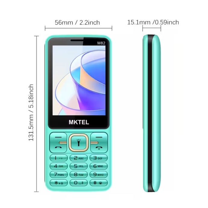 MKTEL M82 je mobitel s 32 MB RAM-a i 32 MB ROM-a, koji podržava dvije SIM kartice. Dolazi u dvije boje i ima bateriju kapaciteta 1800 mAh. Podržava samo 10 jezika: engleski, francuski, španjolski, portugalski, ruski i arapski.