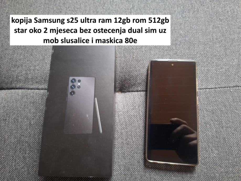 prodajem mobitel kopiju samsung s 25 ultra star oko 2 mjeseca kupio sinu pa nece koristen 2mj. u maskici bez ostecenja sve ispravno specifikacije na slikama uz mobitel ide kutija papiri maskica i slusalice cijena 80 eura fixno