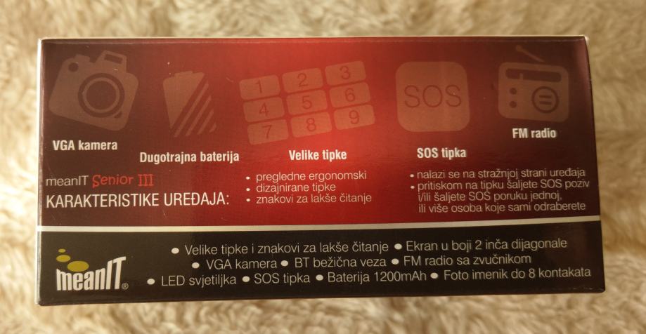 SOS tipka - nalazi se na stržnjoj strani uređaja, pritiskom na tipku šaljete SOS poziv jednoj ili više osoba