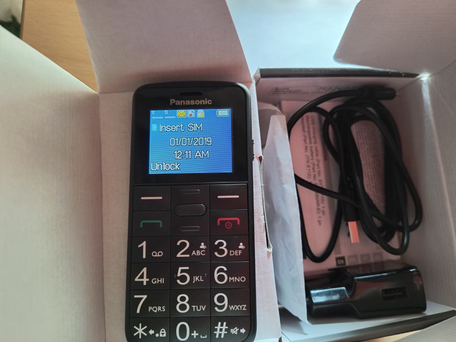 Novi mobitel nikad korišten za starije osobe, sa punjačem i slušalicama. Plačen 43 e.