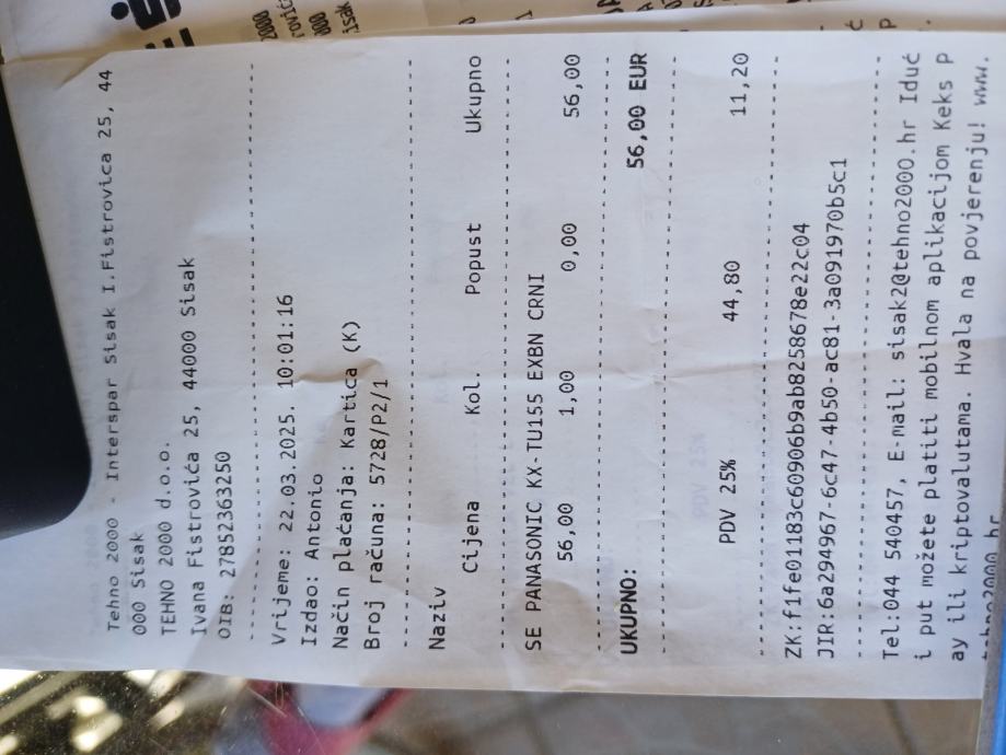Panasonic KX-TU150 crni ,nov,kupljen 22.03 2025.