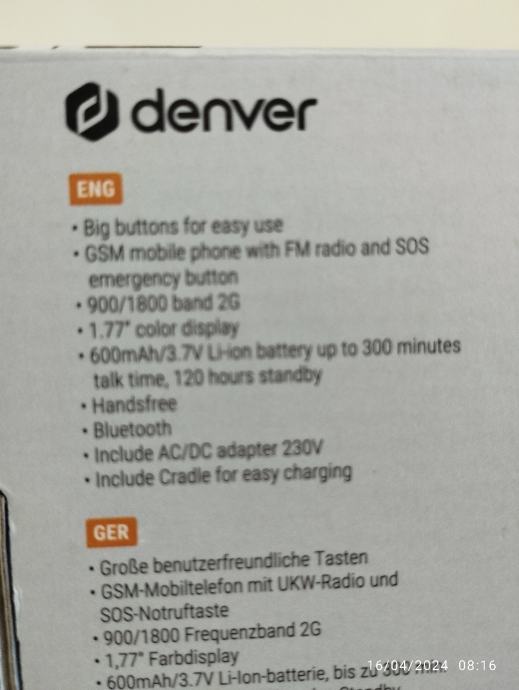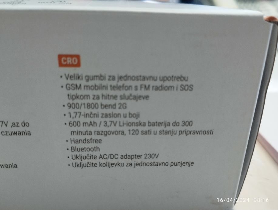 Prodajem isprobani i ispravan mobitel za seniore/starije osobe. Namijenjen je za laksu uporabu jer ima veliki tekst i tipke. Jednostavan za koristenje i baterija dugo traje. Na straznoj strani ima tipka za SOS/pomoc. Osobno preuzimanje u centru Pule ili saljem postom uz nadoplatu postarine. Lp