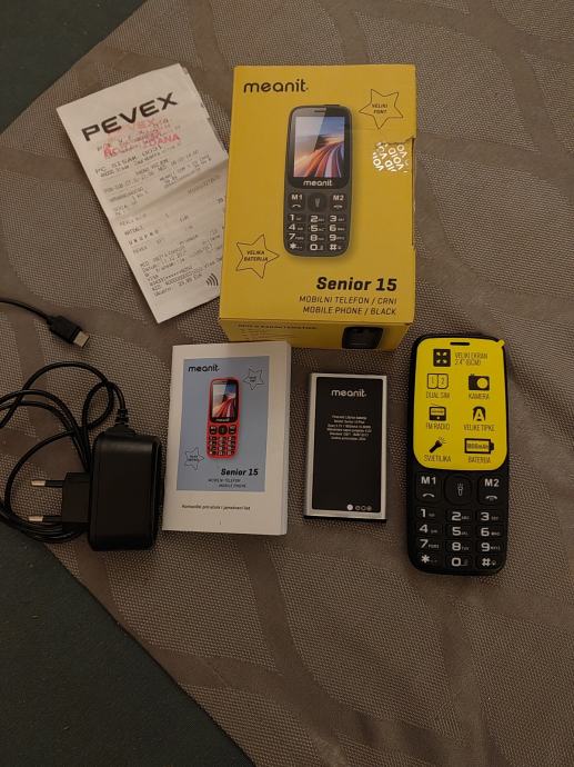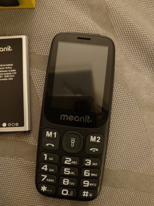 Prodajem nov Meanit Senior 15 mobitel, posebno prilagođen za starije osobe. Uređaj ima veliki ekran od 2,4 inča (6cm) za lakše čitanje, velike tipke koje olakšavaju tipkanje, te snažnu bateriju od 1800mAh koja omogućava dulje korištenje bez potrebe za čestim punjenjem.