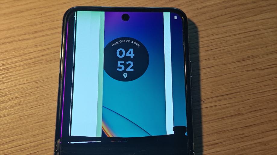 Vanjski ekran i sve ostalo radi bez greške. Unutarnji ekran je dosta oštećen, iako na jednom djelu ekrana čak radi touch.
