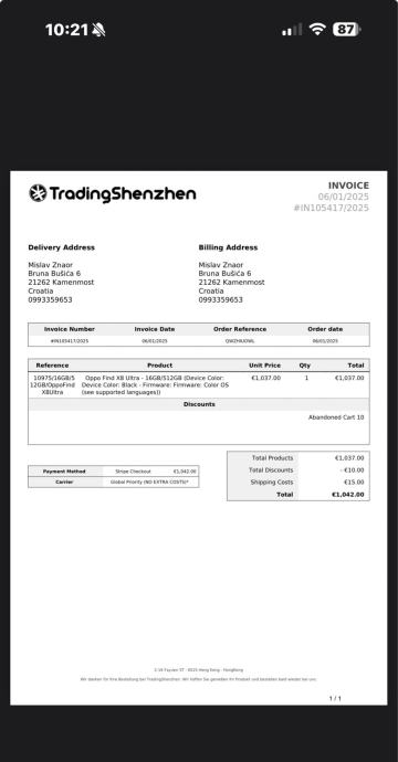 Prodajem Oppo Find X8 ULTRA 512GB, 16GB, kinseksa verzija (JEDINA KOJA I POSTOJI) kupljen 01.06. preko kineske stranice Trading Shenzhen, korišten od polovice 6. mjeseca.