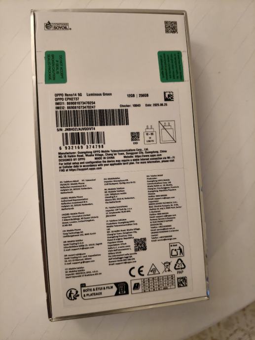 Prodajem nov OPPO Reno 14 5G s 12GB RAM-a i 256GB memorije. Telefon je isprobane, u originalnoj kutiji, testiran. Podržava 5G mrežu i dolazi u boji Luminous Green prema specifikacijama na kutiji.