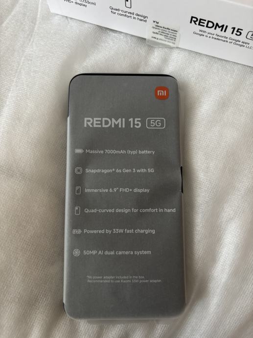 Novi, nekorišten REDMI 15 5 G. Izvađen iz kutije samo za slikanje. Sa njime u kutiji dolazi i maskica te kabel. Za vise specifikacija možete saznati na slikama ili se javite.