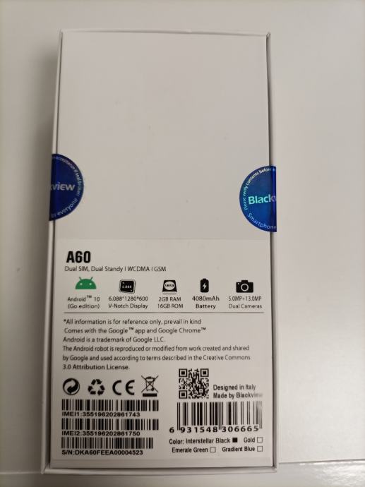 Prodajem novi mobitel Blackview A60 crni dual SIM.