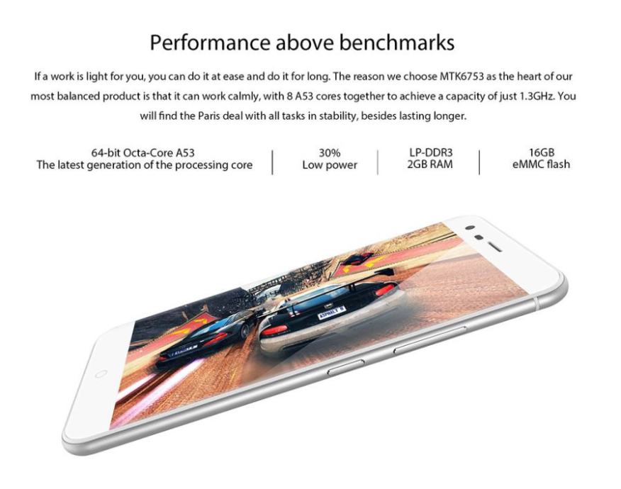 CPU: MT6753 Octa Core 8×1.3GHz 64bit