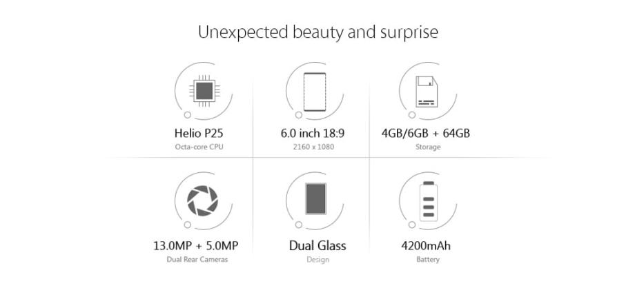CPU: MTK MT6757D Helio P25 2,5 GHz Cortex-A53 Octa-cores