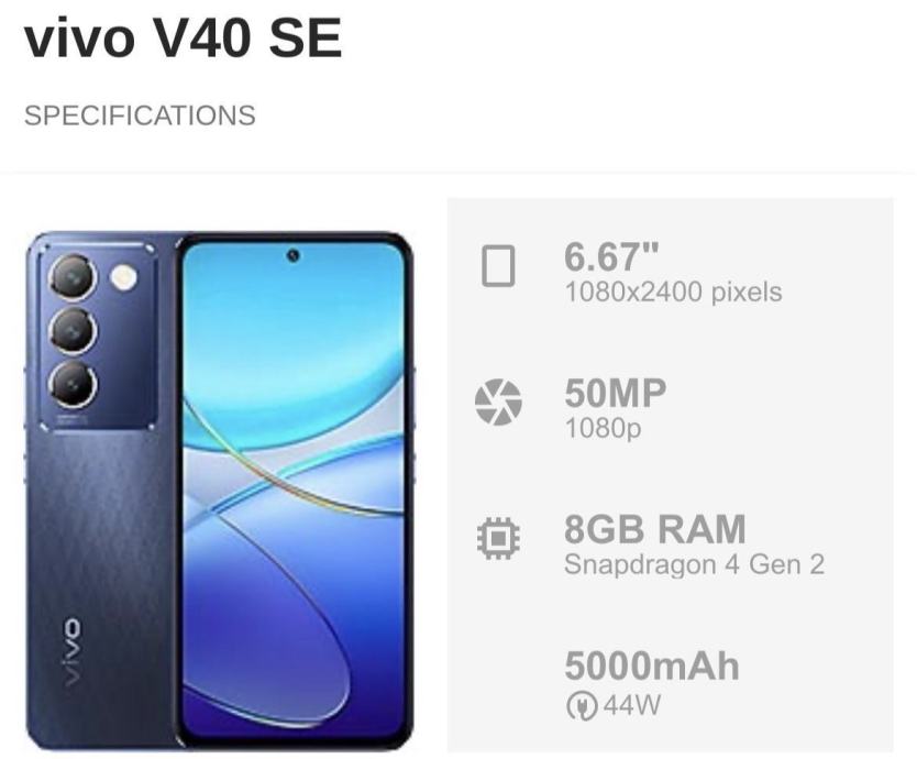 VIVO V40 SE 4G, 256 GB, Crystal Black, Dual SIM